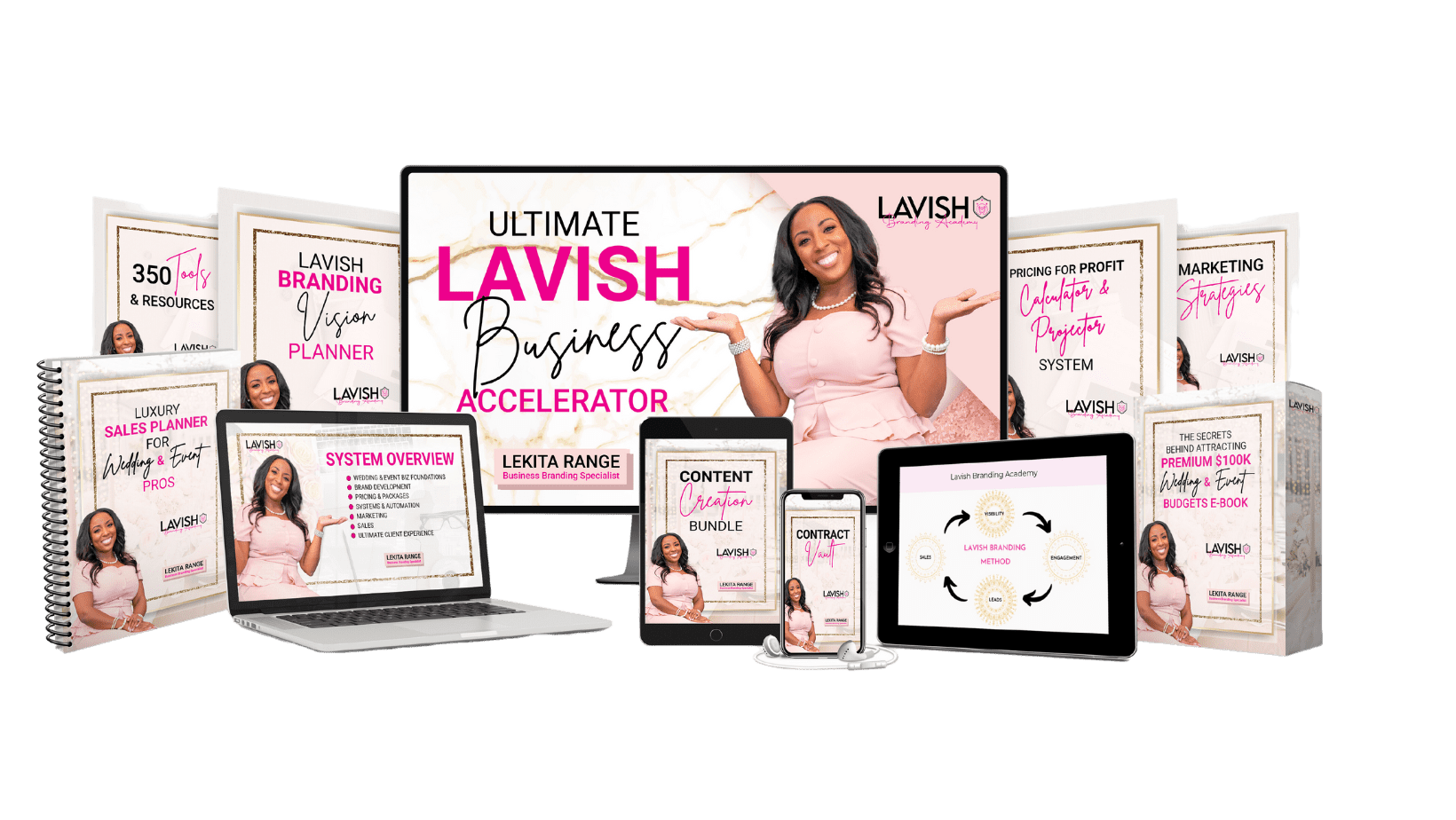 Everything you need to build credibility & scale your high end wedding & event business to multi 6 figures– trainings, video lessons, tutorials, swipe files and more